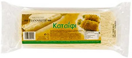 Frische Kataifi-Teigfäden in einem 500 g-Beutel. Fertig zum Backen – ideal für süße Kataifi-Desserts, herzhafte Pasteten oder knusprig-pikante Geflügel-, Fisch- und Garnelengerichte. Knuspriger, flexibler Teig mit einfachen, hochwertigen Zutaten. Im Kühlschrank aufbewahrt, um die Frische zu erhalten.
